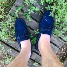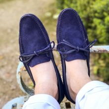 La Bahia est peut être le mocassin en veau-velours le plus élégant que j’ai eu l’occasion de croiser. C’est notamment grâce à sa semelle en gomme montée Blake dont la finesse rappelle une chaussure de ville qu’on doit se résultat. C’est plus confortable et plus chic qu’un mocassin à picot. Cette chaussure sera donc plus habillée et s’accordera mieux avec un pantalon en laine fine ou un chino qu’avec un short.