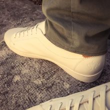 La marque apparaît ton sur ton sur l’arrière de la chaussure et reste donc très discrète, un point positif pour un modèle qui se veut élégant. En tous cas bien plus que des tennis Adidas 😉