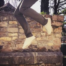 Il ne fait pas assez chaud pour les shorts donc je porte essentiellement mes Faguo avec un chino de couleur (vert, bordeaux, bleu marine…) mais aussi avec des pantalons plus habillés en laine ou en flanelle pour faire un mélange des genres. Le modèle est vraiment passe partout et le détail camel peut être l’objet d’un rappel, avec une ceinture et un bracelet de montre par exemple.